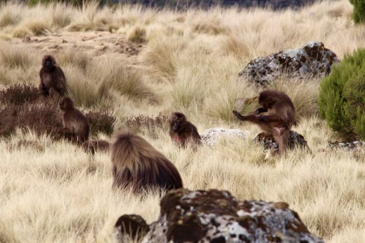 Gelada monkeys. Love the yoga monkey!